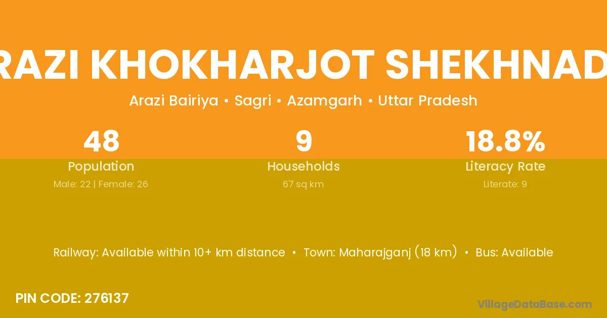 Maharajganj (18 km) is the nearest town to Arazi Khokharjot Shekhnadir village for major economic activities and is located approximately 18 km away.