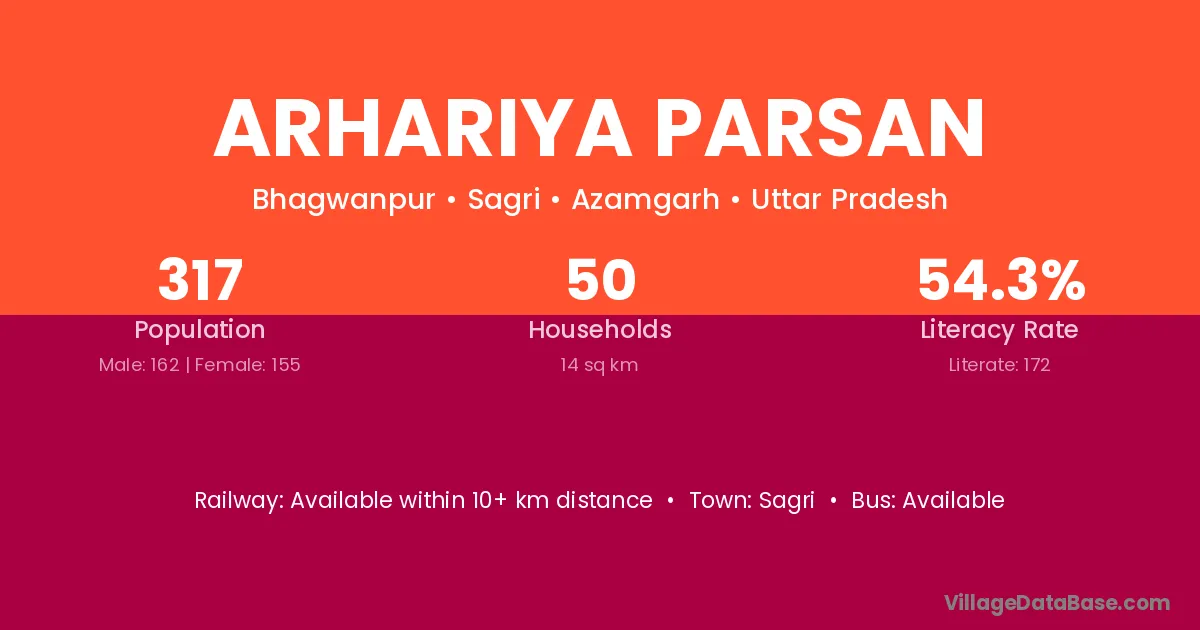 Arhariya Parsan village has a total population of 317 people, of which 162 are males and 155 are females.