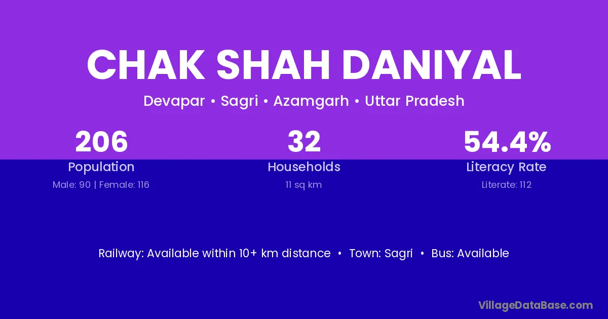 Chak Shah Daniyal village has a total population of 206 people, of which 90 are males and 116 are females.