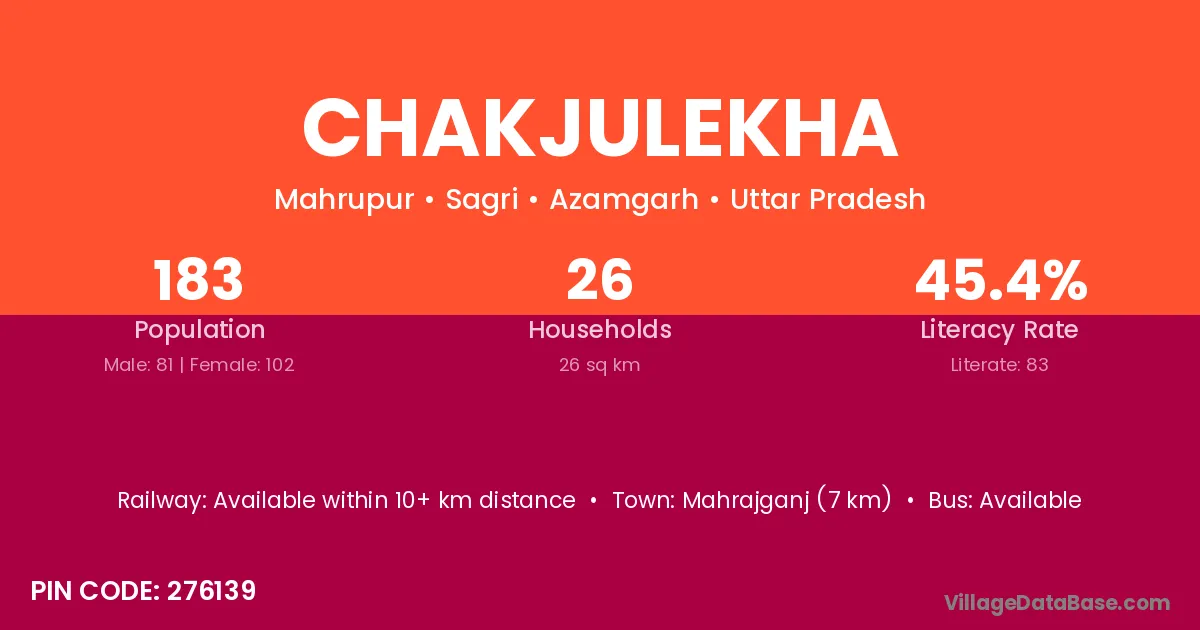 Mahrajganj (7 km) is the nearest town to Chakjulekha village for major economic activities and is located approximately 7 km away.