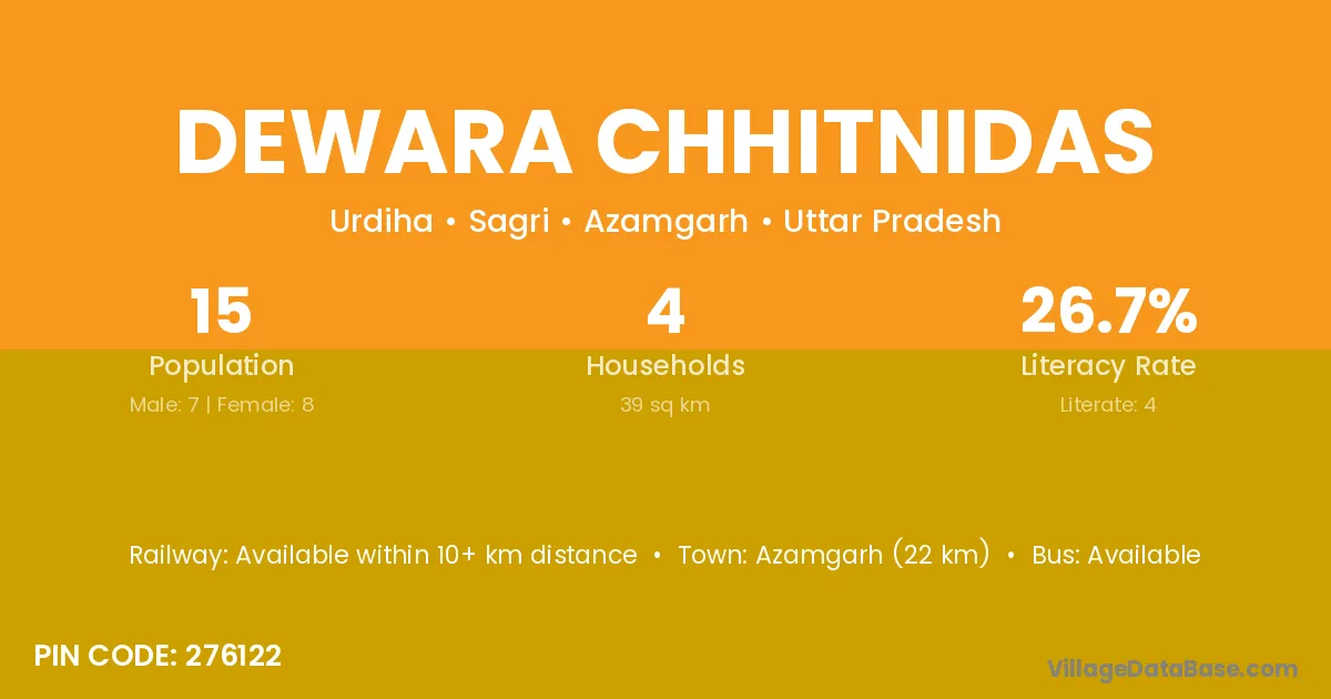 Azamgarh (22 km) is the nearest town to Dewara Chhitnidas village for major economic activities and is located approximately 22 km away.