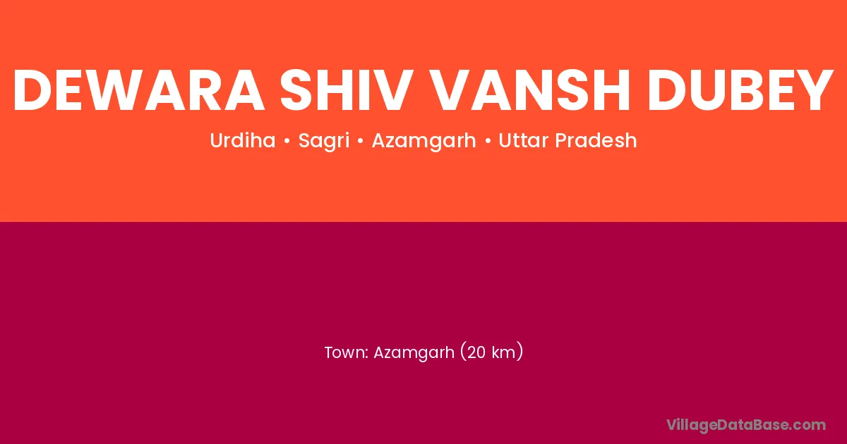 Azamgarh (20 km) is the nearest town to Dewara Shiv Vansh Dubey village for major economic activities and is located approximately 20 km away.