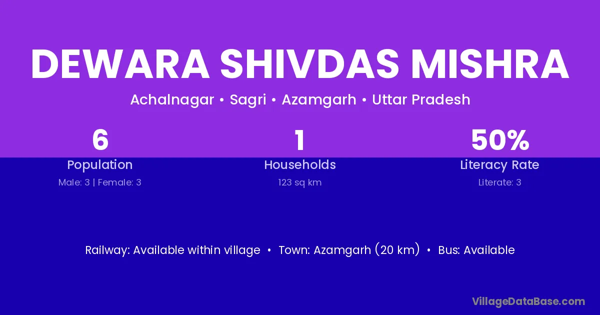 Dewara Shivdas Mishra village has a total population of 6 people, of which 3 are males and 3 are females.
