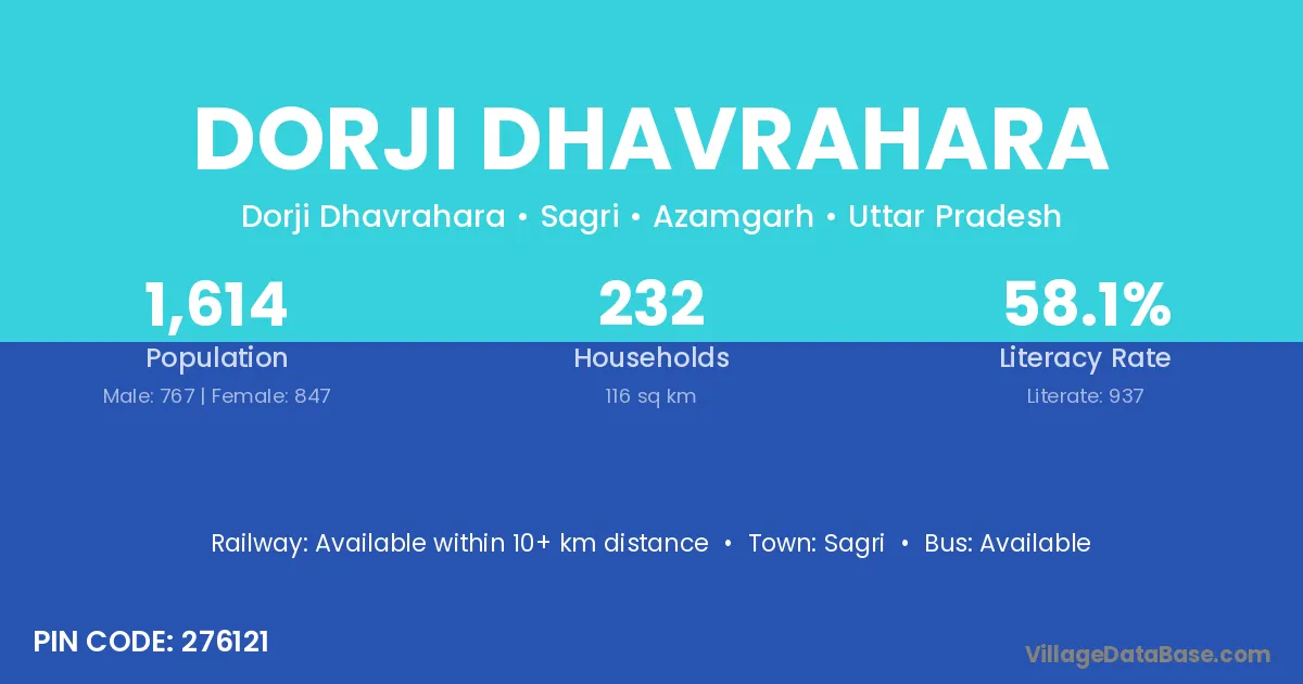 Dorji Dhavrahara village is located in the Sagri Tehsil of the Azamgarh district in Uttar Pradesh .