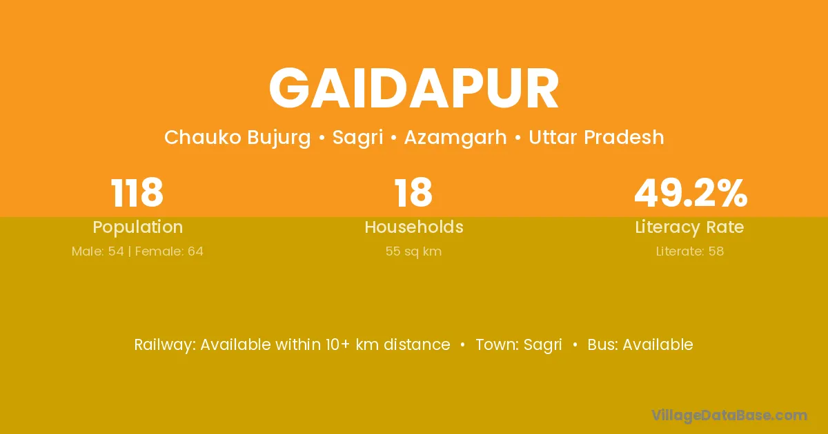 Gaidapur village has a total population of 118 people, of which 54 are males and 64 are females.