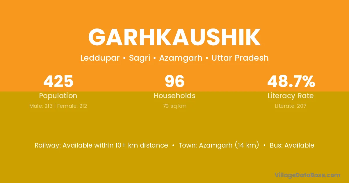 Garhkaushik village has a total population of 425 people, of which 213 are males and 212 are females.