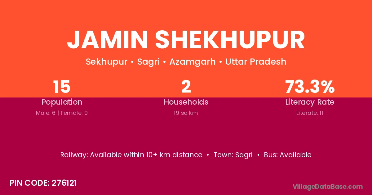 Jamin Shekhupur village has a total population of 15 people, of which 6 are males and 9 are females.