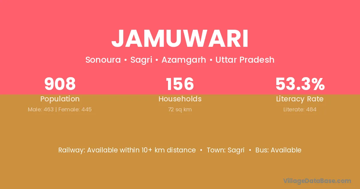 Jamuwari village has a total population of 908 people, of which 463 are males and 445 are females.