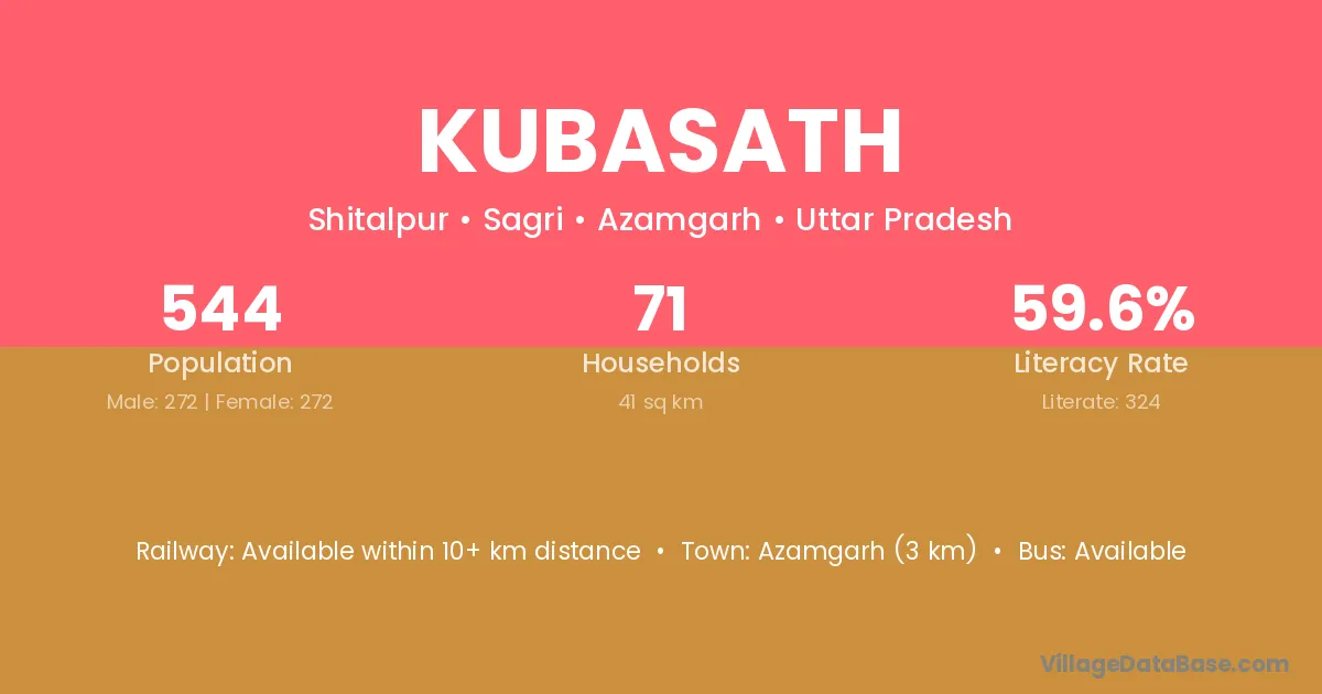 Azamgarh (3 km) is the nearest town to Kubasath village for major economic activities and is located approximately 3 km away.