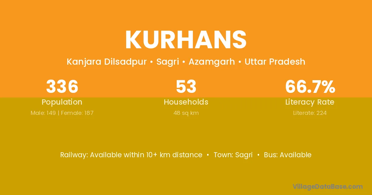 Kurhans village has a total population of 336 people, of which 149 are males and 187 are females.