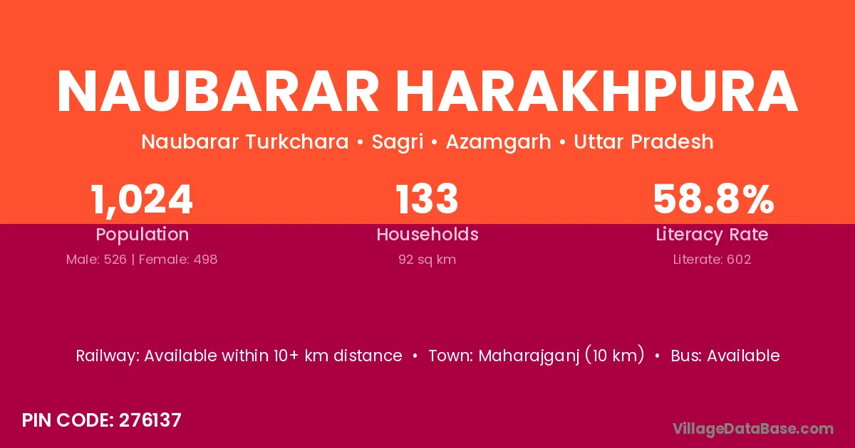 Naubarar Harakhpura village has a total population of 1,024 people, of which 526 are males and 498 are females.