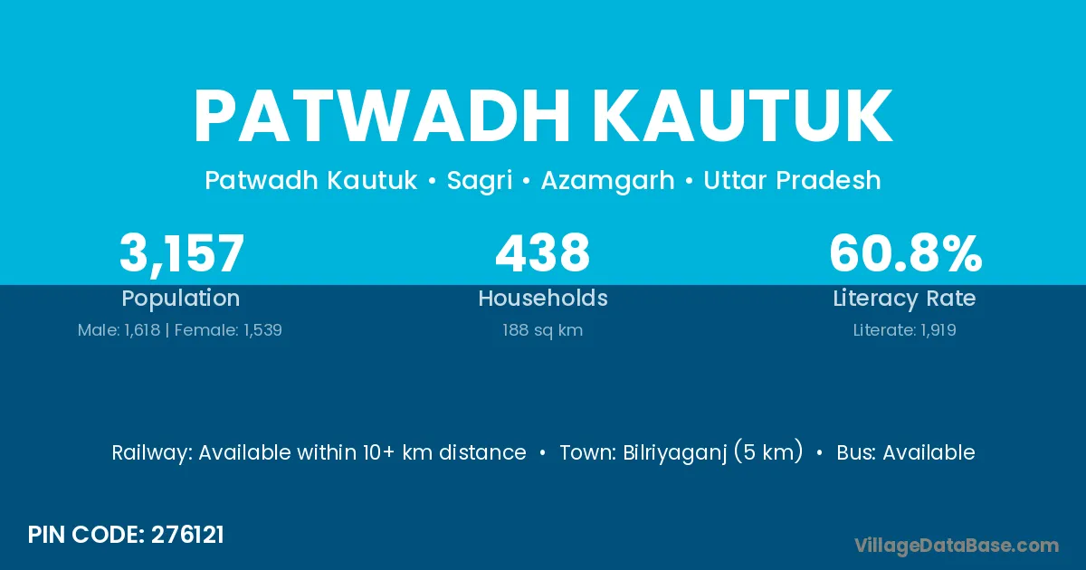 Bilriyaganj (5 km) is the nearest town to Patwadh Kautuk village for major economic activities and is located approximately 5 km away.