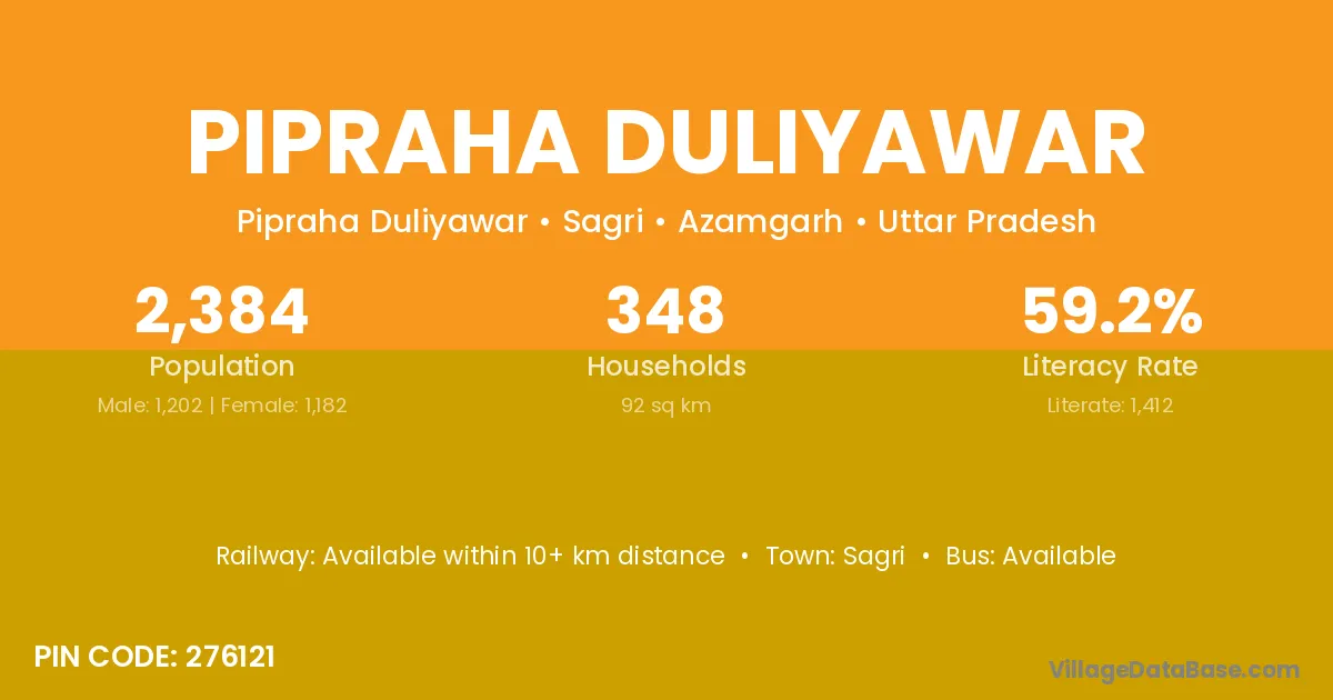 There are approximately 348 households in Pipraha Duliyawar village.