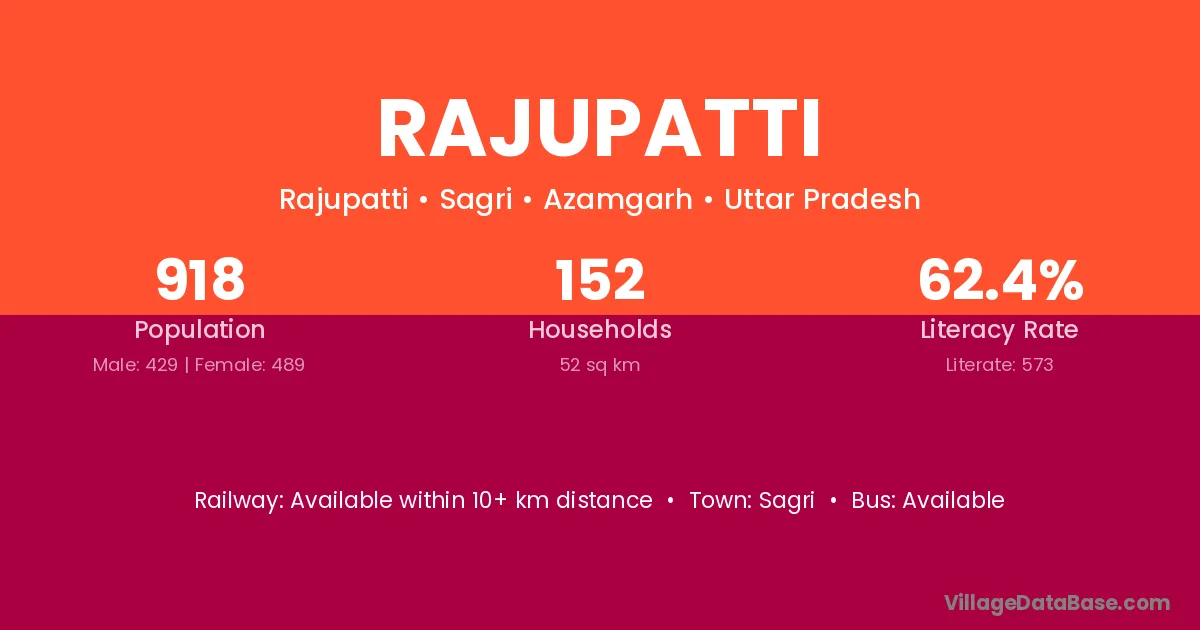 Rajupatti village has a total population of 918 people, of which 429 are males and 489 are females.