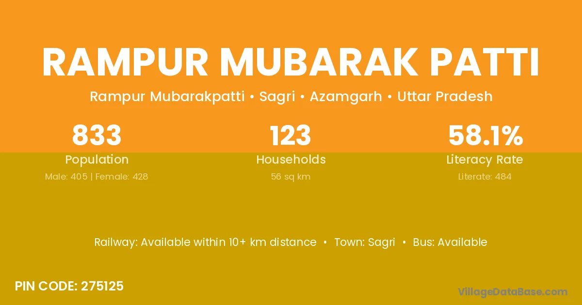 Rampur Mubarak Patti village has a total population of 833 people, of which 405 are males and 428 are females.