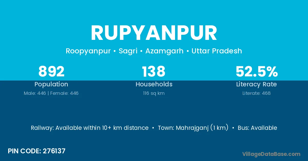 Mahrajganj (1 km) is the nearest town to Rupyanpur village for major economic activities and is located approximately 1 km away.
