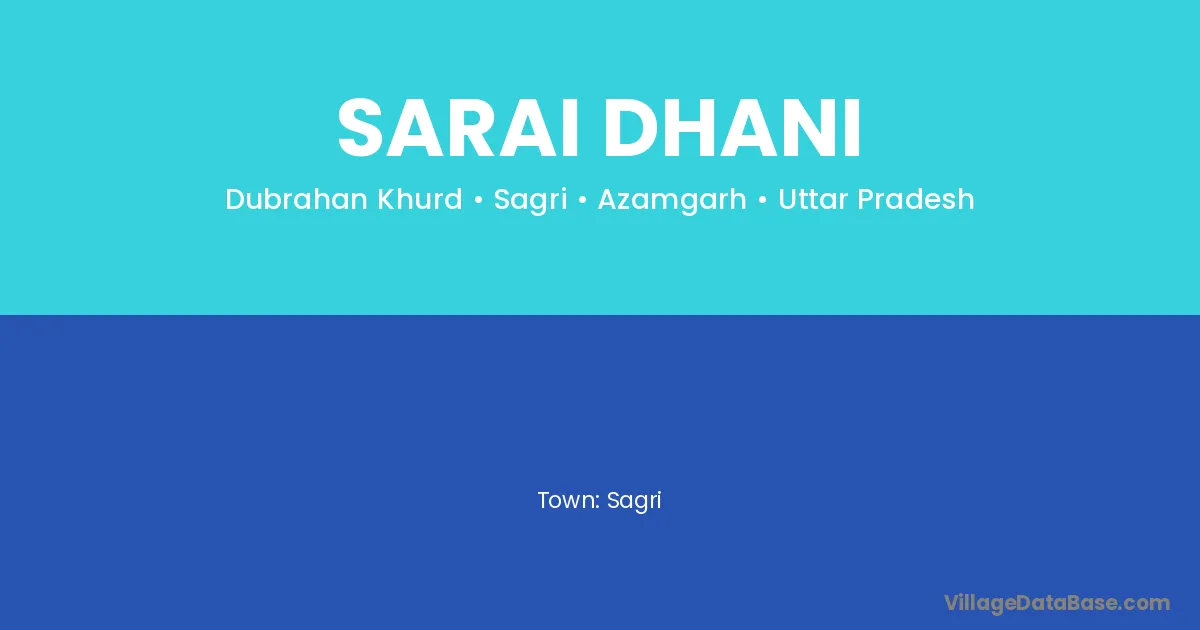 Sarai Dhani village is located in the Sagri Tehsil of the Azamgarh district in Uttar Pradesh .