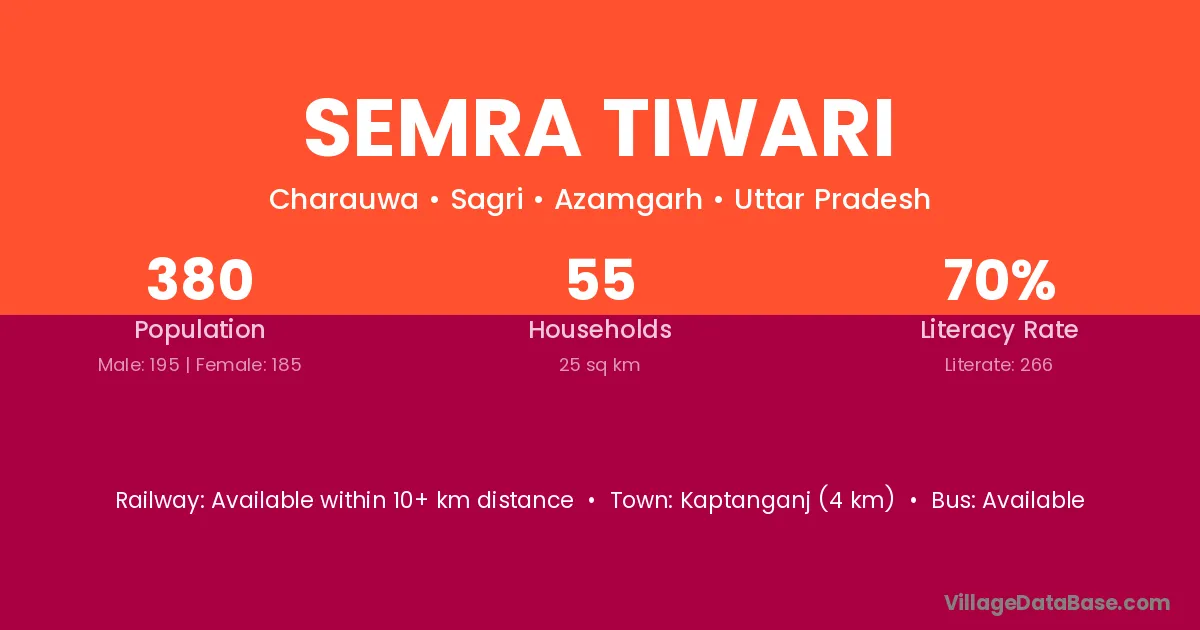 Kaptanganj (4 km) is the nearest town to Semra Tiwari village for major economic activities and is located approximately 4 km away.