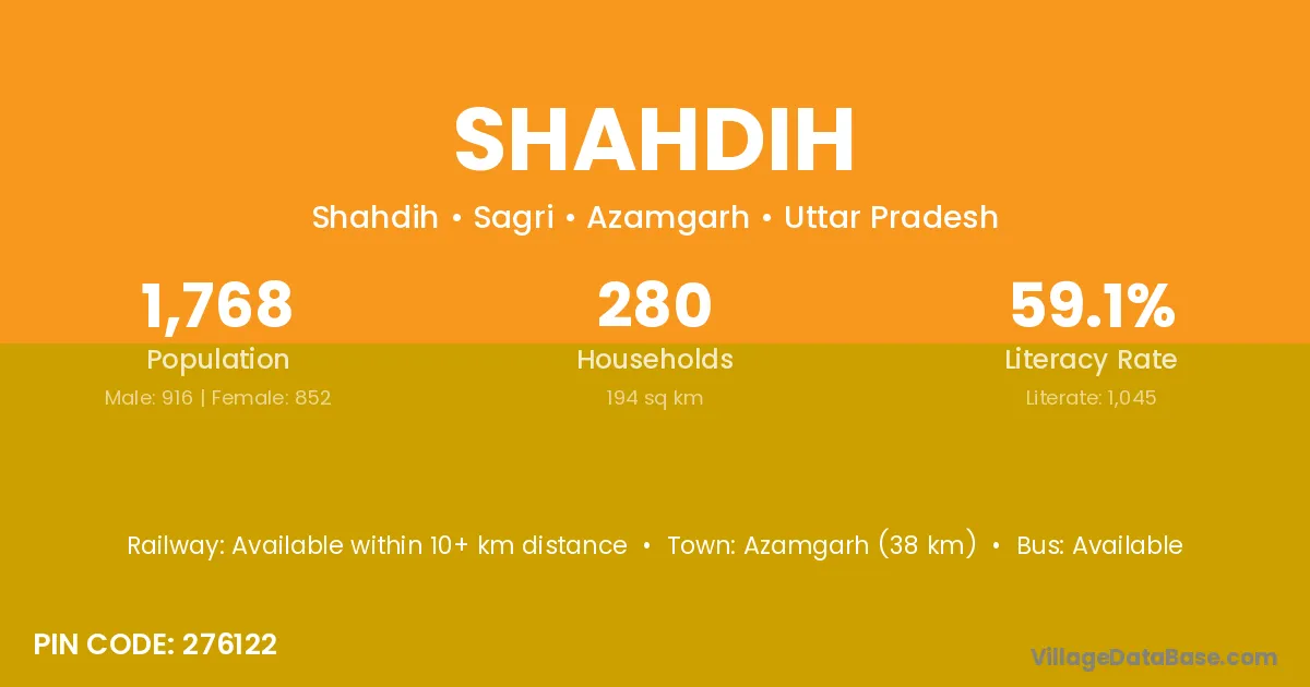 Azamgarh (38 km) is the nearest town to Shahdih village for major economic activities and is located approximately 38 km away.