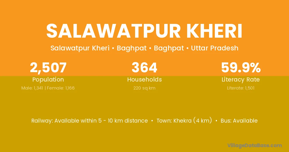 Khekra (4 km) is the nearest town to Salawatpur Kheri village for major economic activities and is located approximately 4 km away.