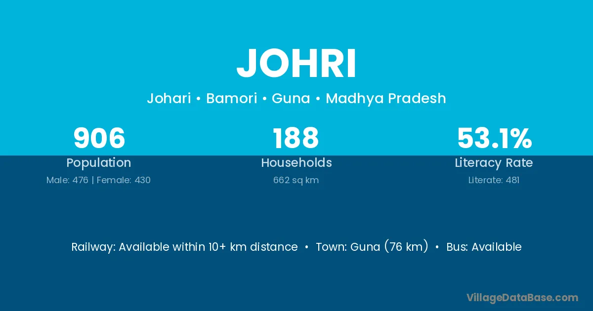Johri village has a total population of 5,337 people, of which 2,913 are males and 2,424 are females.