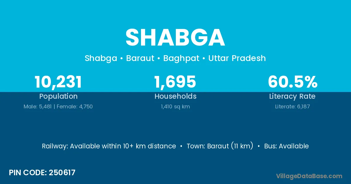 Baraut (11 km) is the nearest town to Shabga village for major economic activities and is located approximately 11 km away.