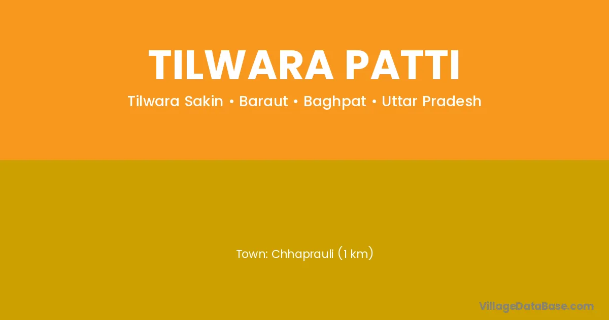 Chhaprauli (1 km) is the nearest town to Tilwara Patti village for major economic activities and is located approximately 1 km away.