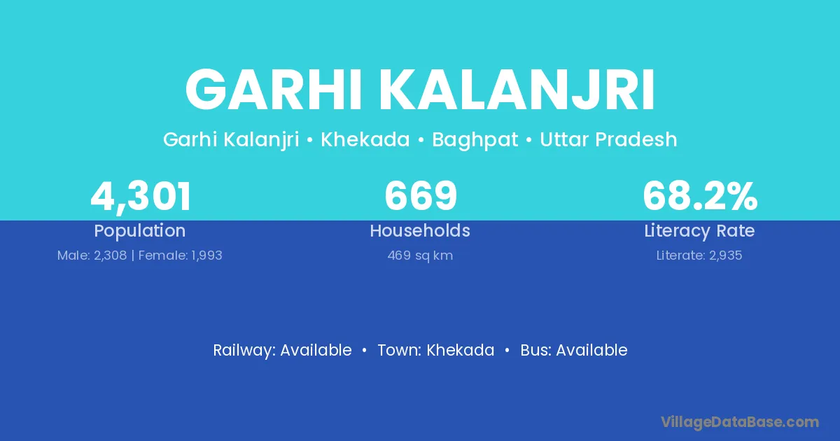 Garhi Kalanjri village has a total population of 4,301 people, of which 2,308 are males and 1,993 are females.