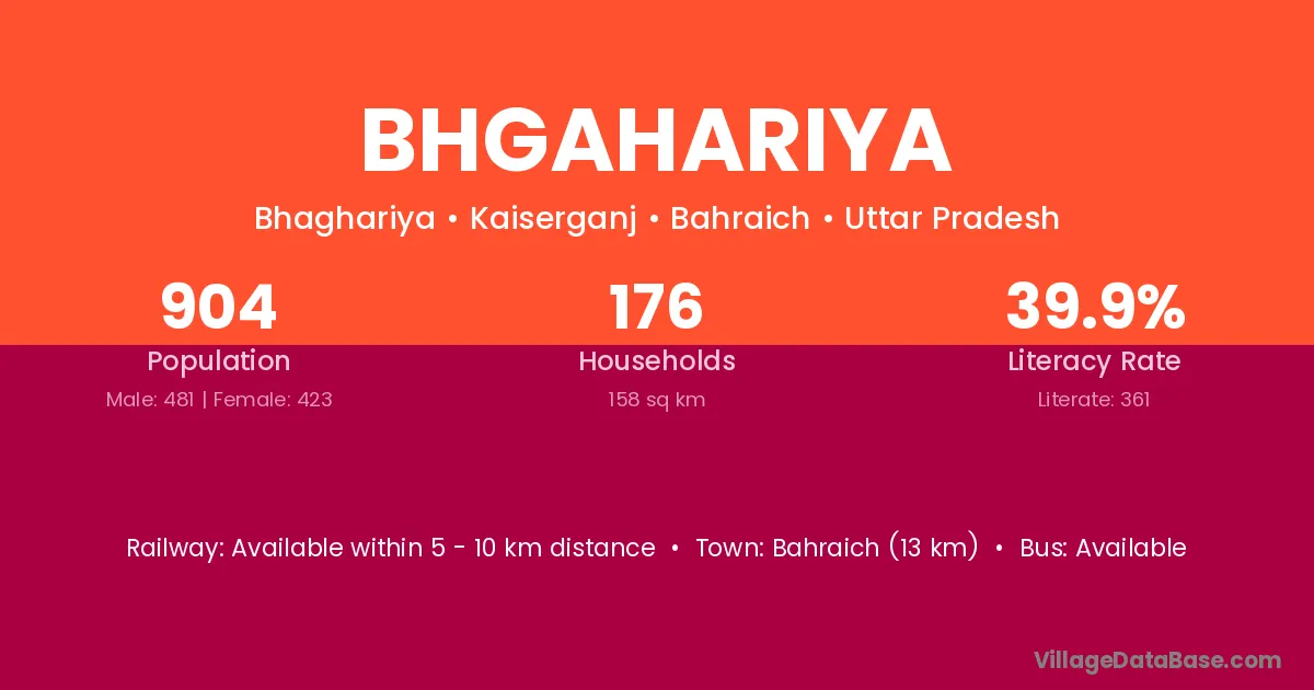 Bahraich (13 km) is the nearest town to Bhgahariya village for major economic activities and is located approximately 13 km away.
