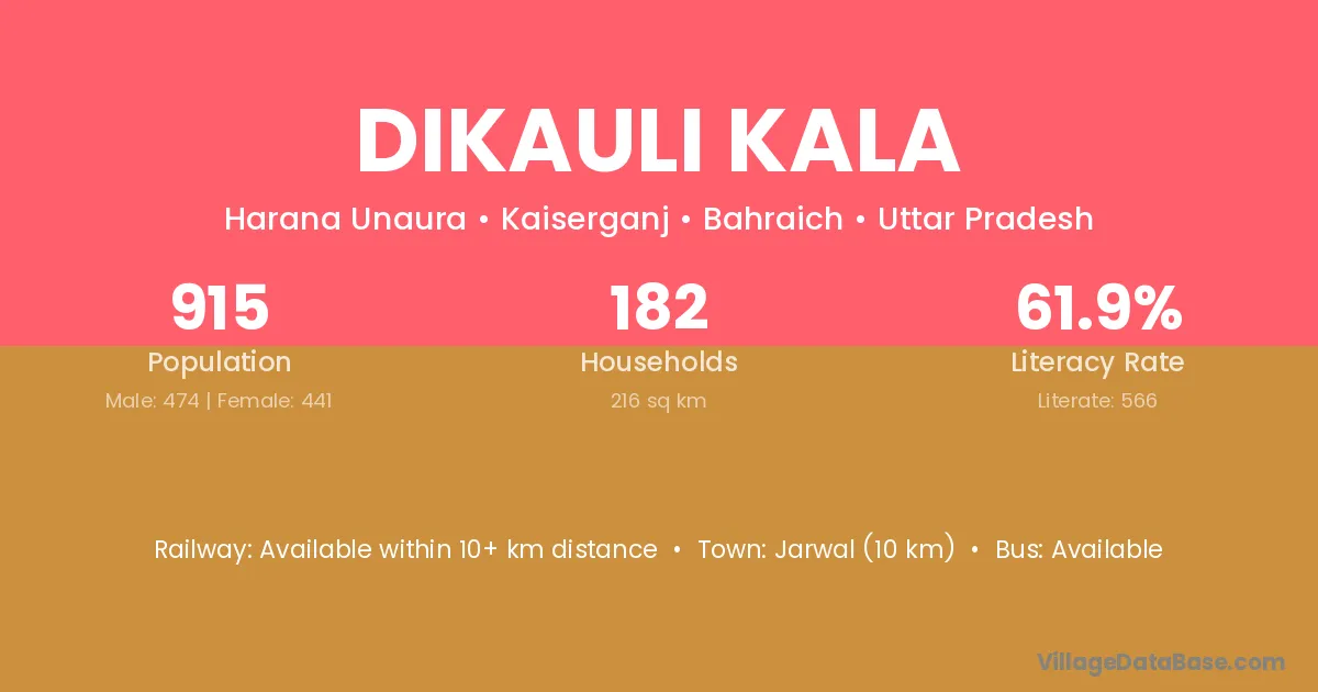 Dikauli Kala village has a total population of 915 people, of which 474 are males and 441 are females.