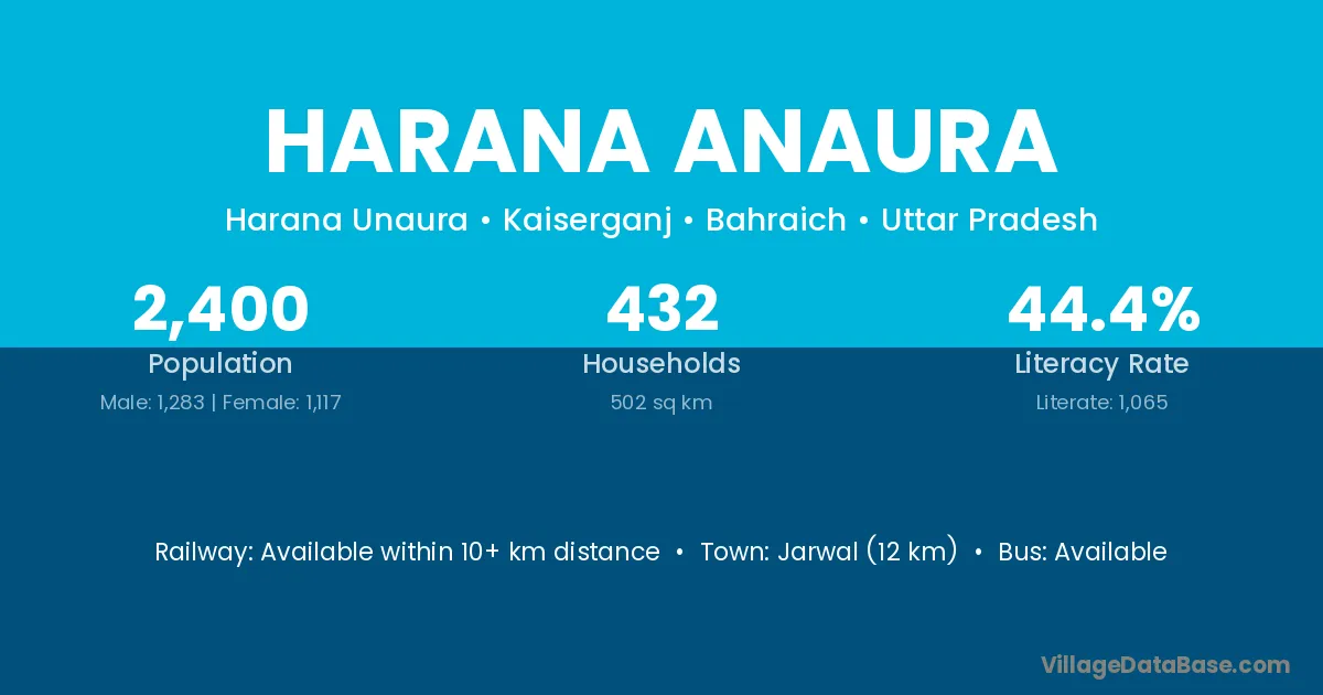 Jarwal (12 km) is the nearest town to Harana Anaura village for major economic activities and is located approximately 12 km away.