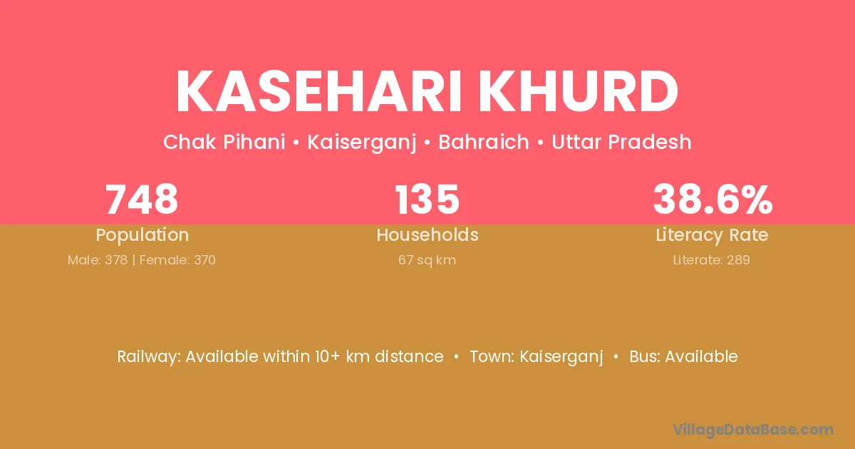 Kasehari Khurd village has a total population of 748 people, of which 378 are males and 370 are females.