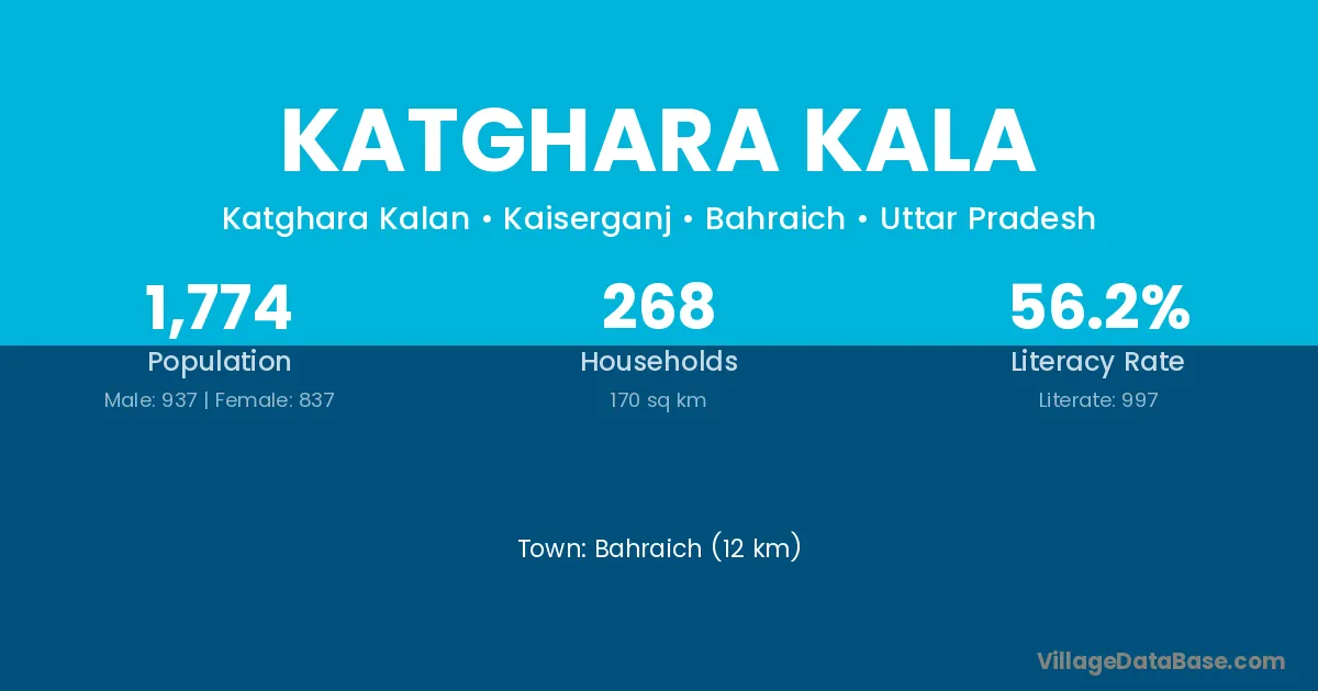 Bahraich (12 km) is the nearest town to Katghara Kala village for major economic activities and is located approximately 12 km away.