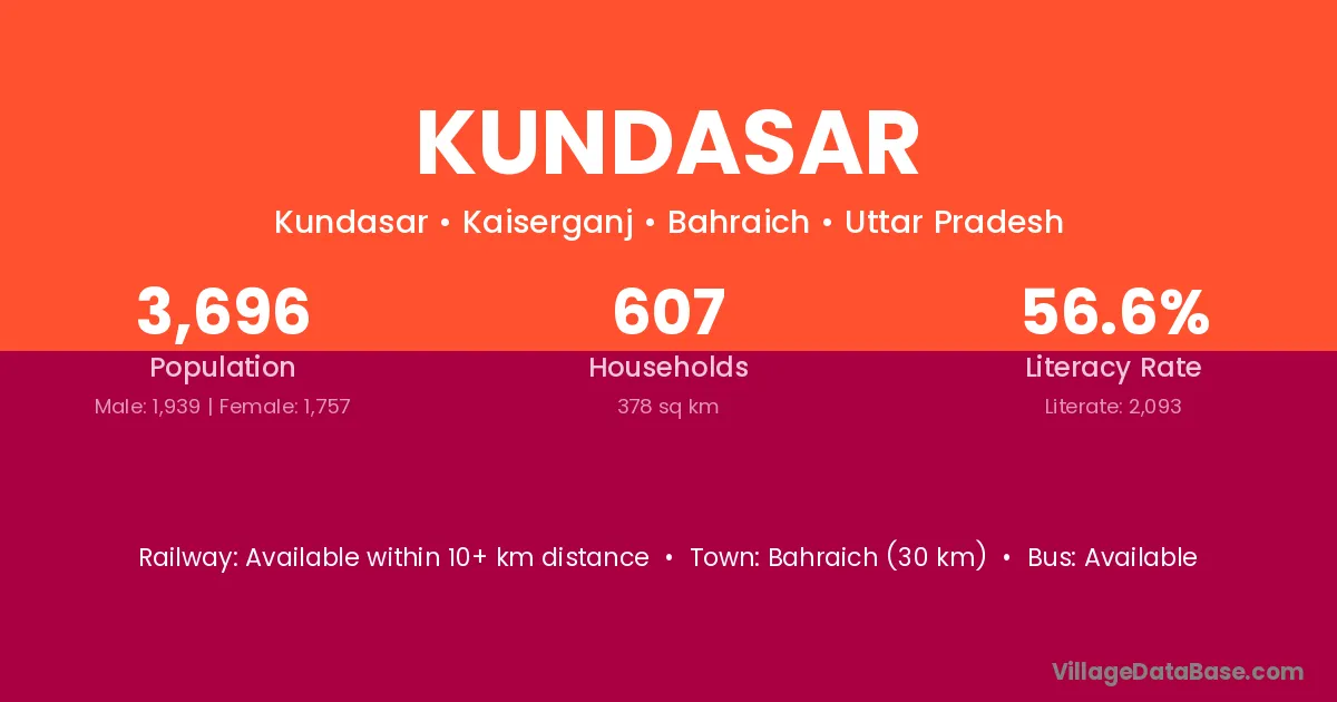 Bahraich (30 km) is the nearest town to Kundasar village for major economic activities and is located approximately 30 km away.