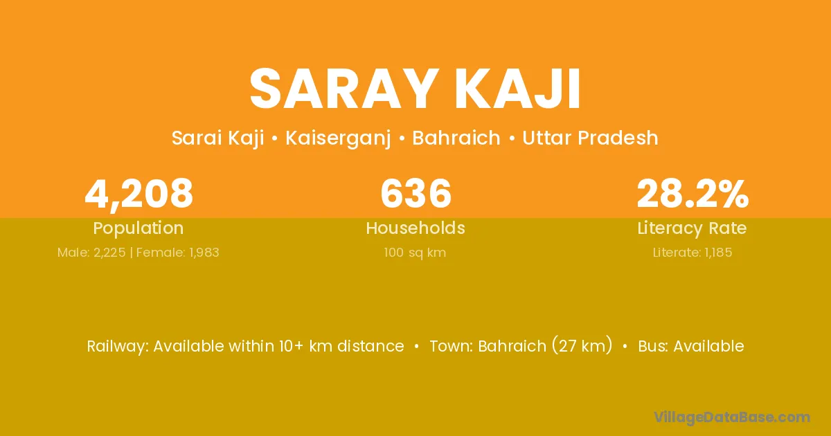Bahraich (27 km) is the nearest town to Saray Kaji village for major economic activities and is located approximately 27 km away.
