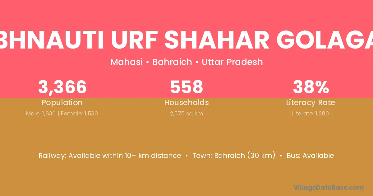 Bahraich (30 km) is the nearest town to Babhnauti Urf Shahar Golaganj village for major economic activities and is located approximately 30 km away.