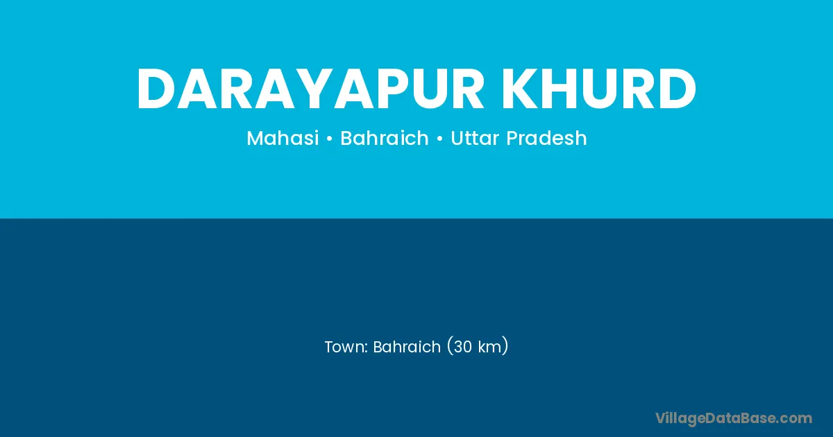 Bahraich (30 km) is the nearest town to Darayapur Khurd village for major economic activities and is located approximately 30 km away.