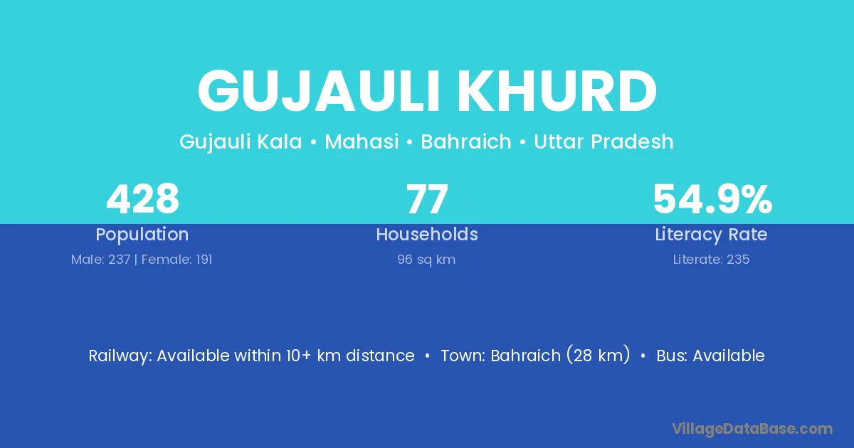 Gujauli Khurd village has a total population of 428 people, of which 237 are males and 191 are females.
