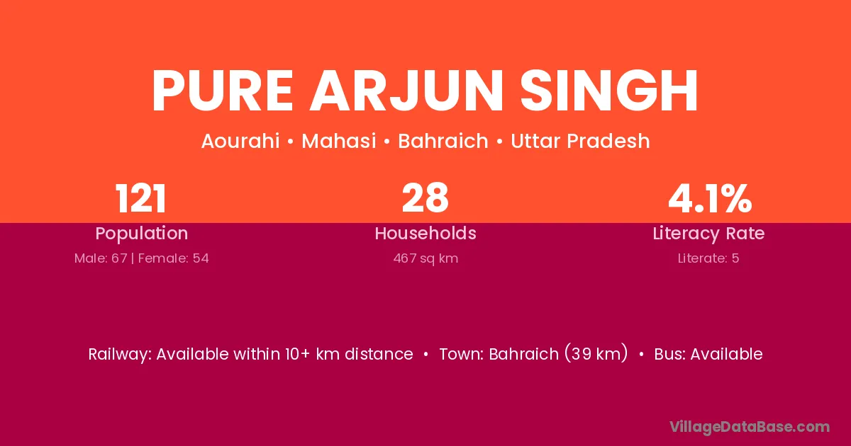 Bahraich (39 km) is the nearest town to Pure Arjun Singh village for major economic activities and is located approximately 39 km away.