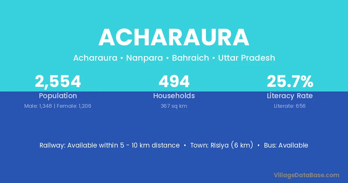 Risiya (6 km) is the nearest town to Acharaura village for major economic activities and is located approximately 6 km away.