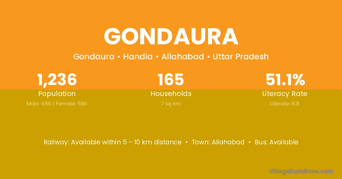 The literacy rate of Gondaura village is 41.30%. Male literacy stands at 48.90% and female literacy at 32.61%.