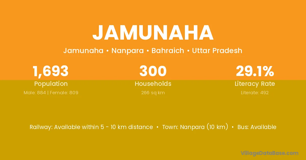 Nanpara (10 km) is the nearest town to Jamunaha village for major economic activities and is located approximately 10 km away.