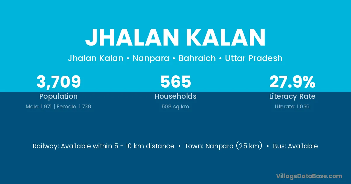 Nanpara (25 km) is the nearest town to Jhalan Kalan village for major economic activities and is located approximately 25 km away.