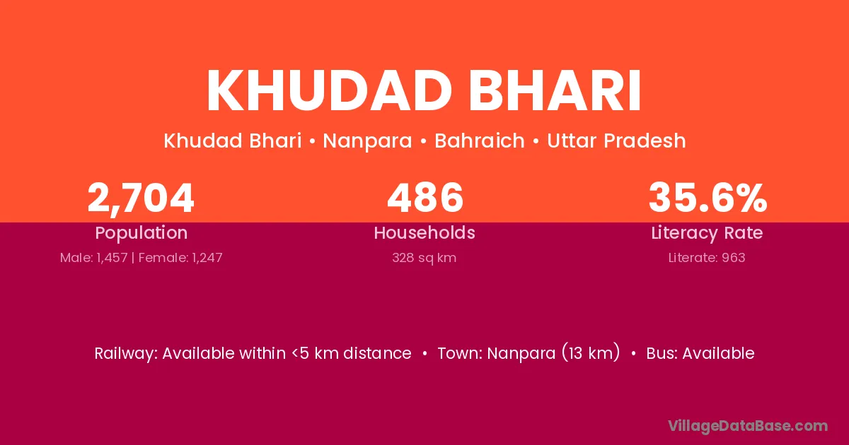 Nanpara (13 km) is the nearest town to Khudad Bhari village for major economic activities and is located approximately 13 km away.