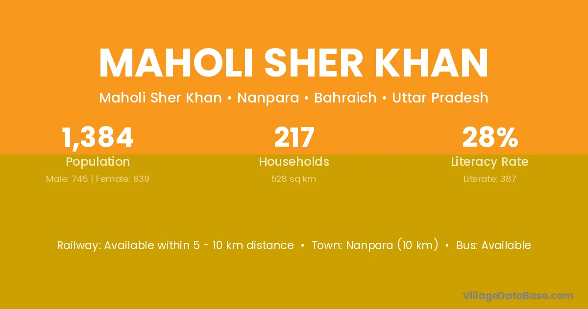 Nanpara (10 km) is the nearest town to Maholi Sher Khan village for major economic activities and is located approximately 10 km away.