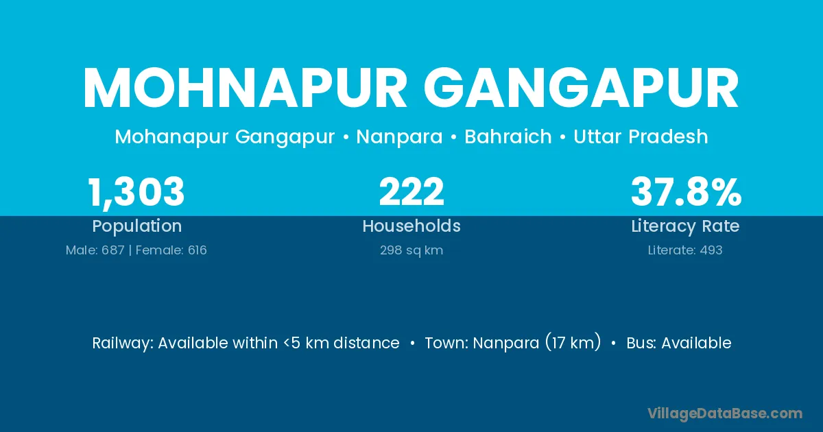 Nanpara (17 km) is the nearest town to Mohnapur Gangapur village for major economic activities and is located approximately 17 km away.