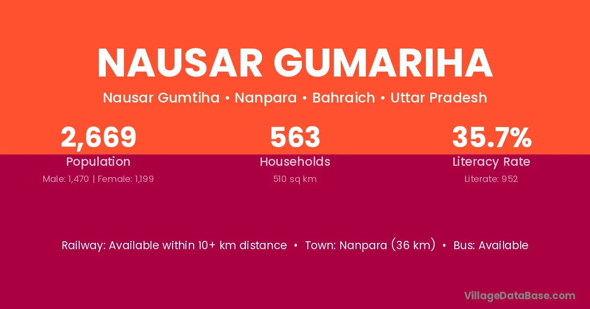 Nanpara (36 km) is the nearest town to Nausar Gumariha village for major economic activities and is located approximately 36 km away.