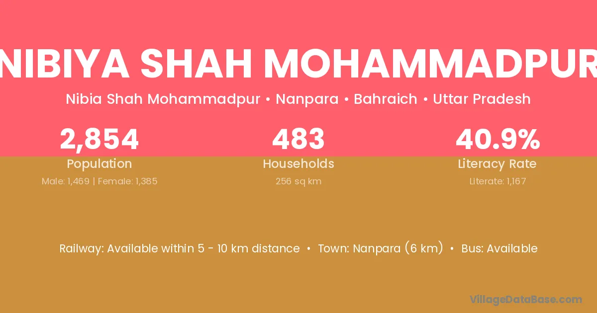 Nanpara (6 km) is the nearest town to Nibiya Shah Mohammadpur village for major economic activities and is located approximately 6 km away.