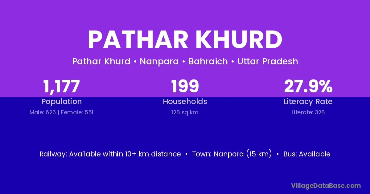 Nanpara (15 km) is the nearest town to Pathar Khurd village for major economic activities and is located approximately 15 km away.