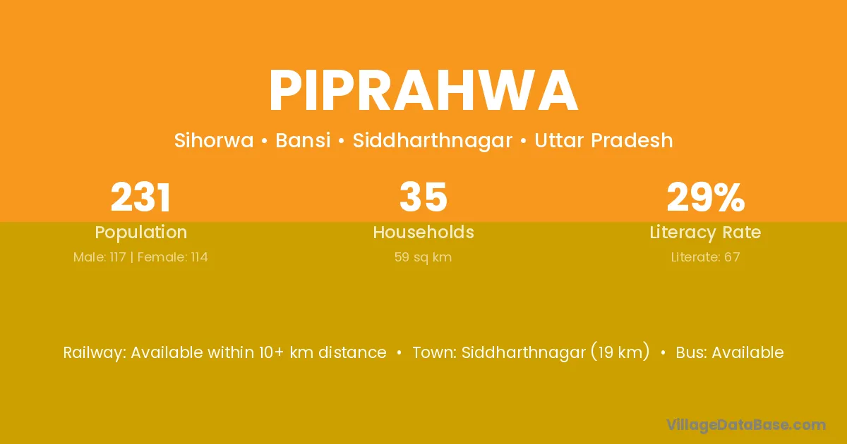 Nanpara (8 km) is the nearest town to Piprahwa village for major economic activities and is located approximately 8 km away.